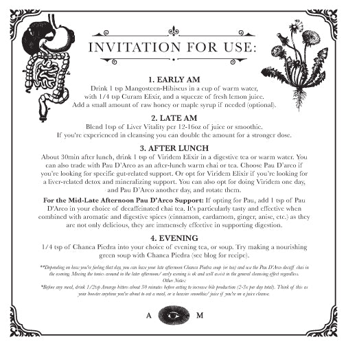 This cleansing kit features a curated selection of herbs traditionally used to support the body’s natural detoxification pathways. These botanicals have been valued for their nourishing, mineral-rich, and balancing properties, with particular focus on herbs historically used to support liver, gallbladder, and digestive function.*